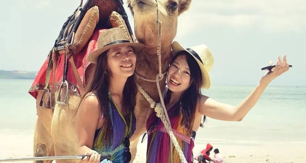 Bali camel Safari one of the uinique tourist attractions on the island of bali. This activity is in the southern area of bali, you can enjoy a camel safari on a white sandy beach. While enjoying the beach views and waves crashing along the coast of nusa dua. You can choose a time slot morning or evening. And you will be guided by an experienced guide and will be happy to help take photos. This tour is a very exciting activity.